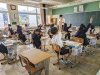 菊間小では、一年の目標や抱負を達成する決意を込め、学年に応じた字を書くことにしています。